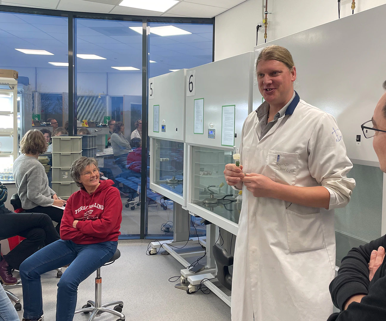 De aanwezigen van het congres kunnen deze vrijdag kiezen uit allerlei innovatieve workshops: van H2O-drones tot het onderzoeken van exoplaneten. Ruud Boertjes, docent Laboratoriumtechniek bij Rijn IJssel, neemt de deelnemers mee in de wondere wereld van de plantveredeling. Hij vindt het goed om te zien hoe snel de deelnemers contact met elkaar maken: Het is belangrijk om andere vakgenoten te leren kennen.