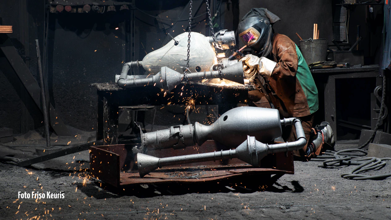 De Bron staat voor balans en verbinding. De objecten lijken elkaar in evenwicht te houden, wat samenwerking en eenheid symboliseert. Gijs Assmann werkte samen met studenten en medewerkers aan het ontwerp. Het kunstwerk is nu een herkenningspunt op de campus, zegt hij.