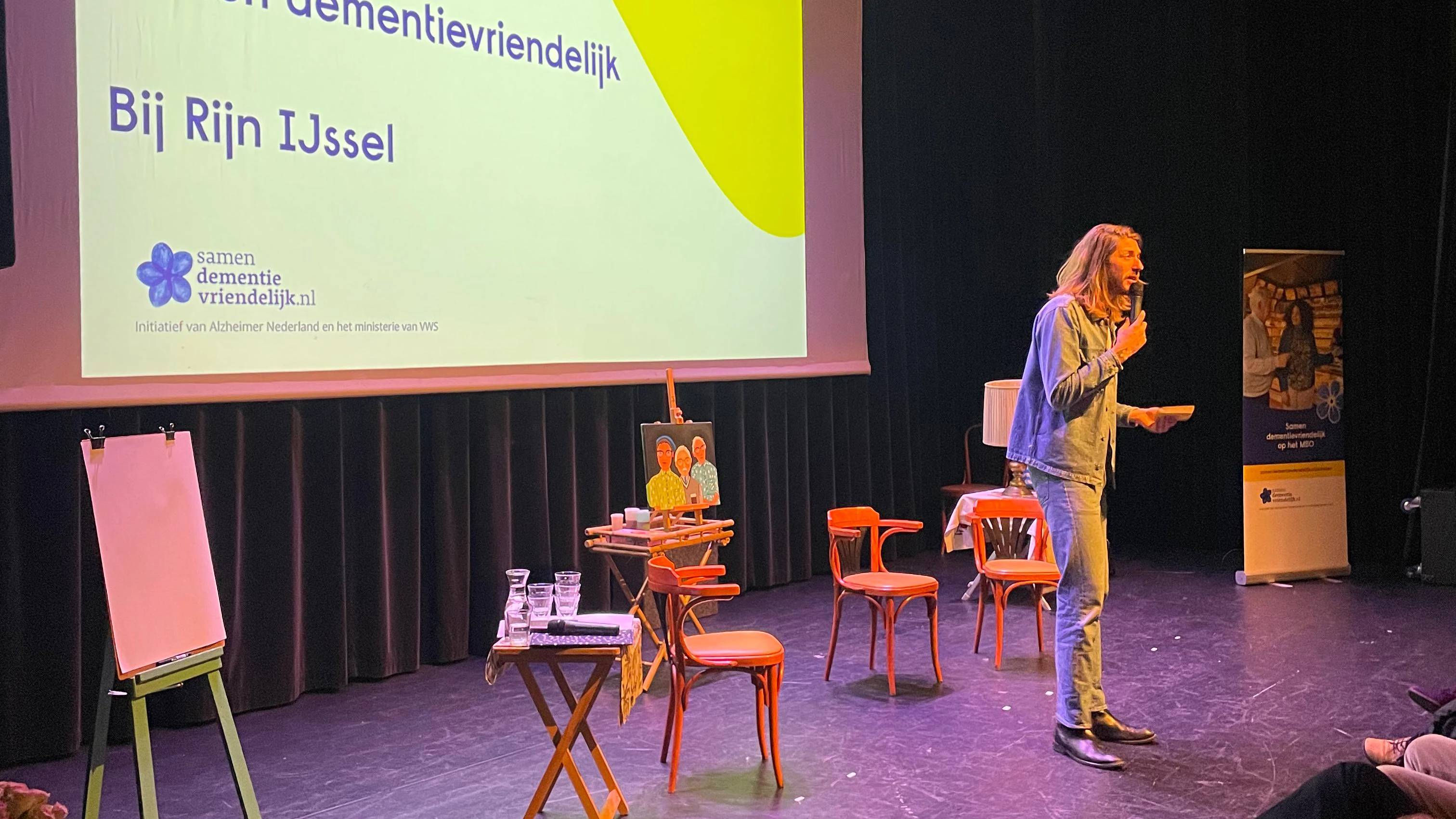 Daarna benadrukt ook Alexander van de Koevering, lid van het college van bestuur van Rijn IJssel, met een persoonlijke anekdote het belang van de bijeenkomst. "Mijn moeder heeft alzheimer. Ik merk dat ze zich daarvoor soms schaamt, omdat ze weet dat ze soms niet goed uit haar woorden kan komen.